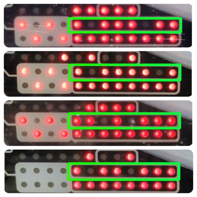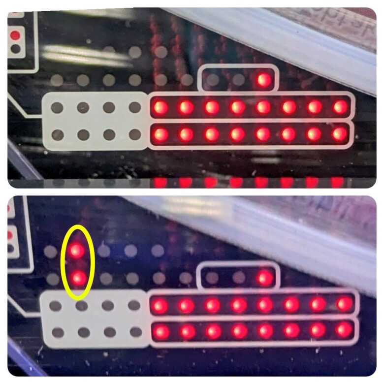 緑枠内がヘソセグ(ヘソ大当り時に点灯する)